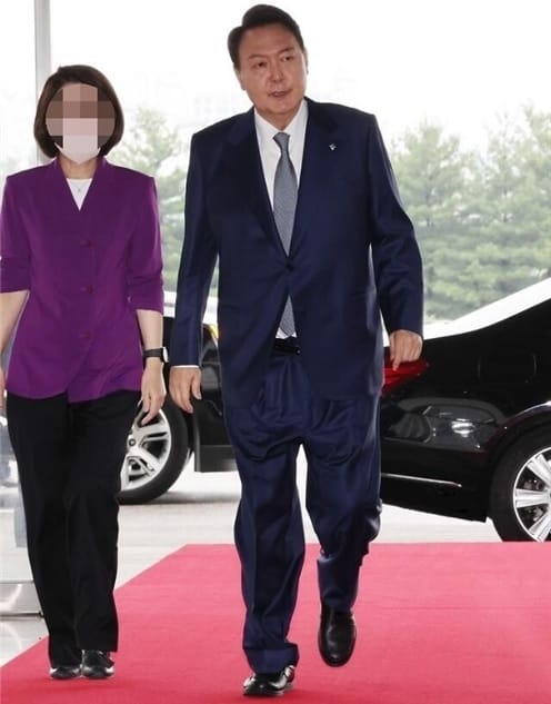 An ill-fitting pair of trousers would be forgivable for most men of Yoon’s girth: few non-presidents have the same access to bespoke tailoring. But Yoon’s crimes against fashion are apparently premeditated: in a Chosun Ilbo 조선일보 interview, Yoon’s three tailors said the president insists on having ample room in his pants. One of the tailors said: “We kept suggesting a slimmer silhouette for the trousers, but the president just would not give in.” Another chimed in: “To this day, I want to hem those legs whenever I see the president on television.”
